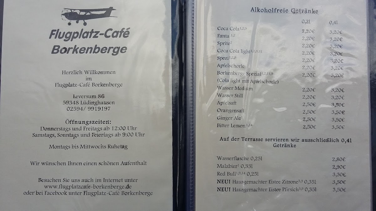 Flugplatz Cafe Borkenberge Menu